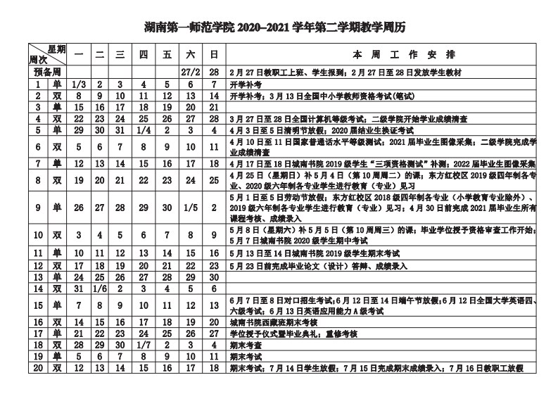 附件 必赢76net线路官网2020-2021学年第二学期教学周历.doc